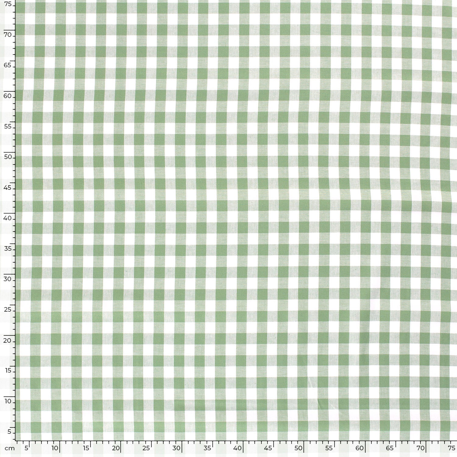 A lightweight, smooth cotton poplin with a classic gingham check pattern. Its crisp texture and breathable quality make it versatile and easy to work with. Commonly used for tablecloths, accessories, blouses, and various apparel or décor projects.