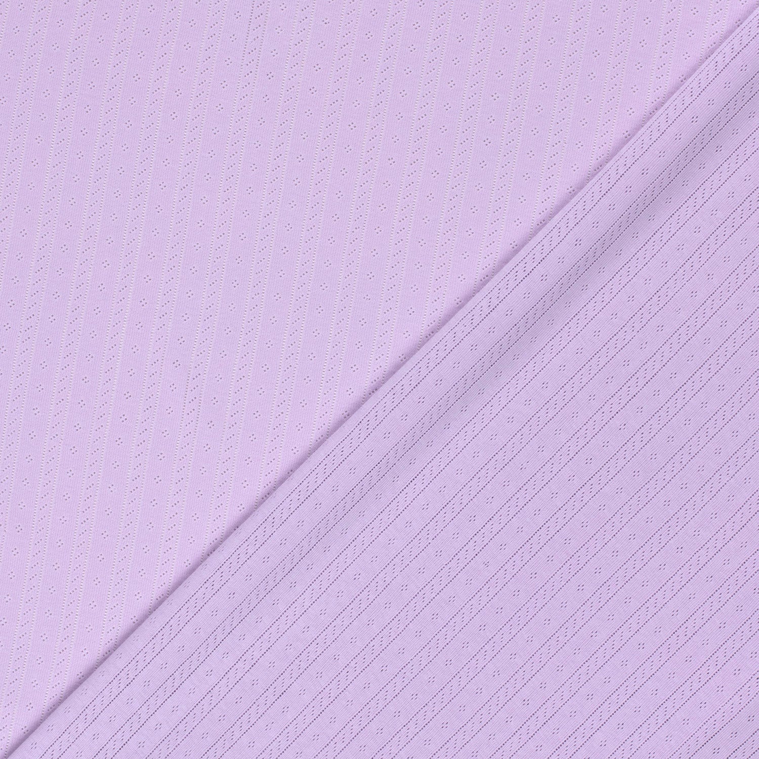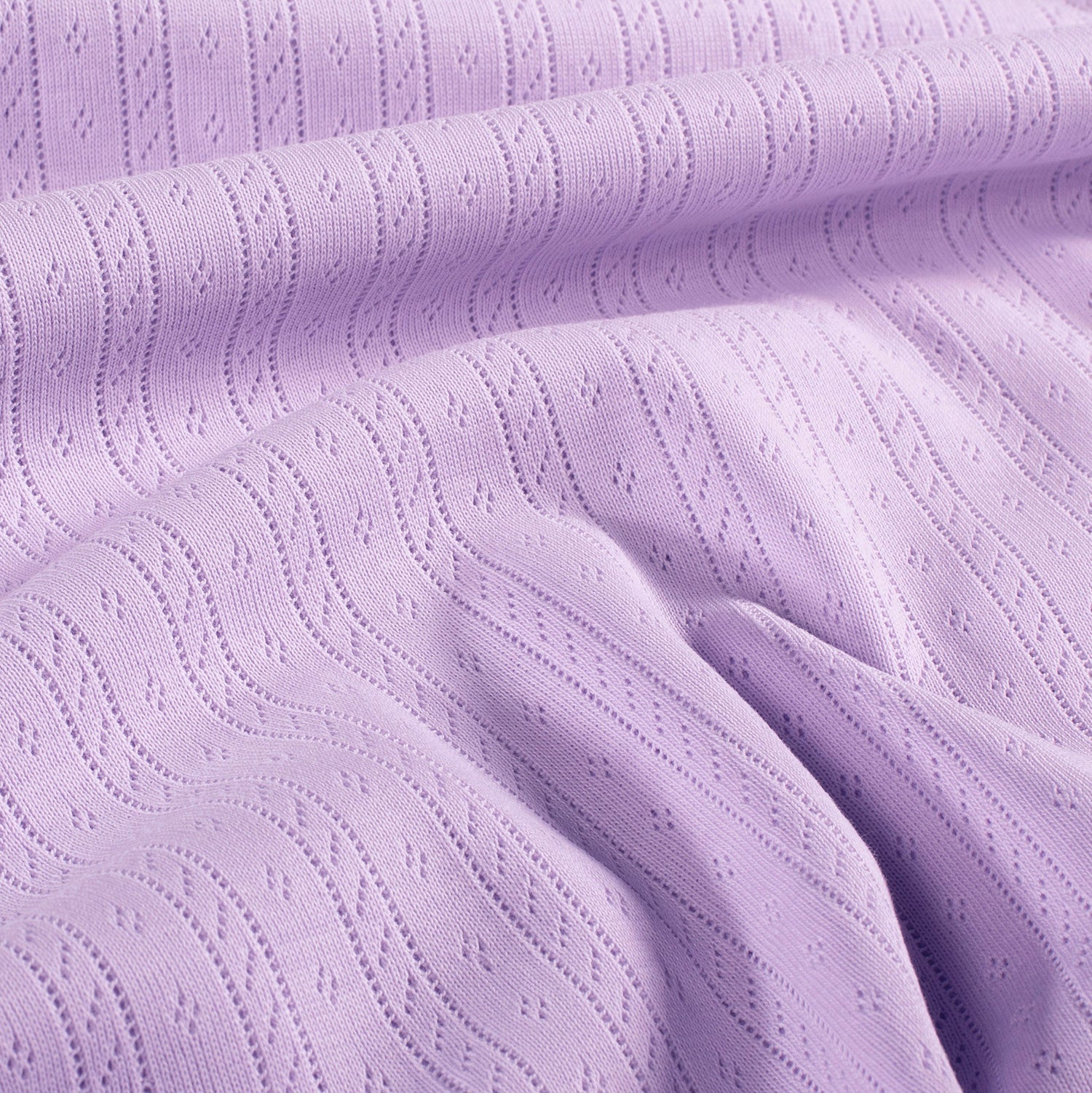 Pointelle is a lightweight, breathable knit featuring a delicate openwork pattern made from small, decorative holes. It has a soft, feminine look and feel, making it ideal for airy tops, babywear, and everyday layering pieces.