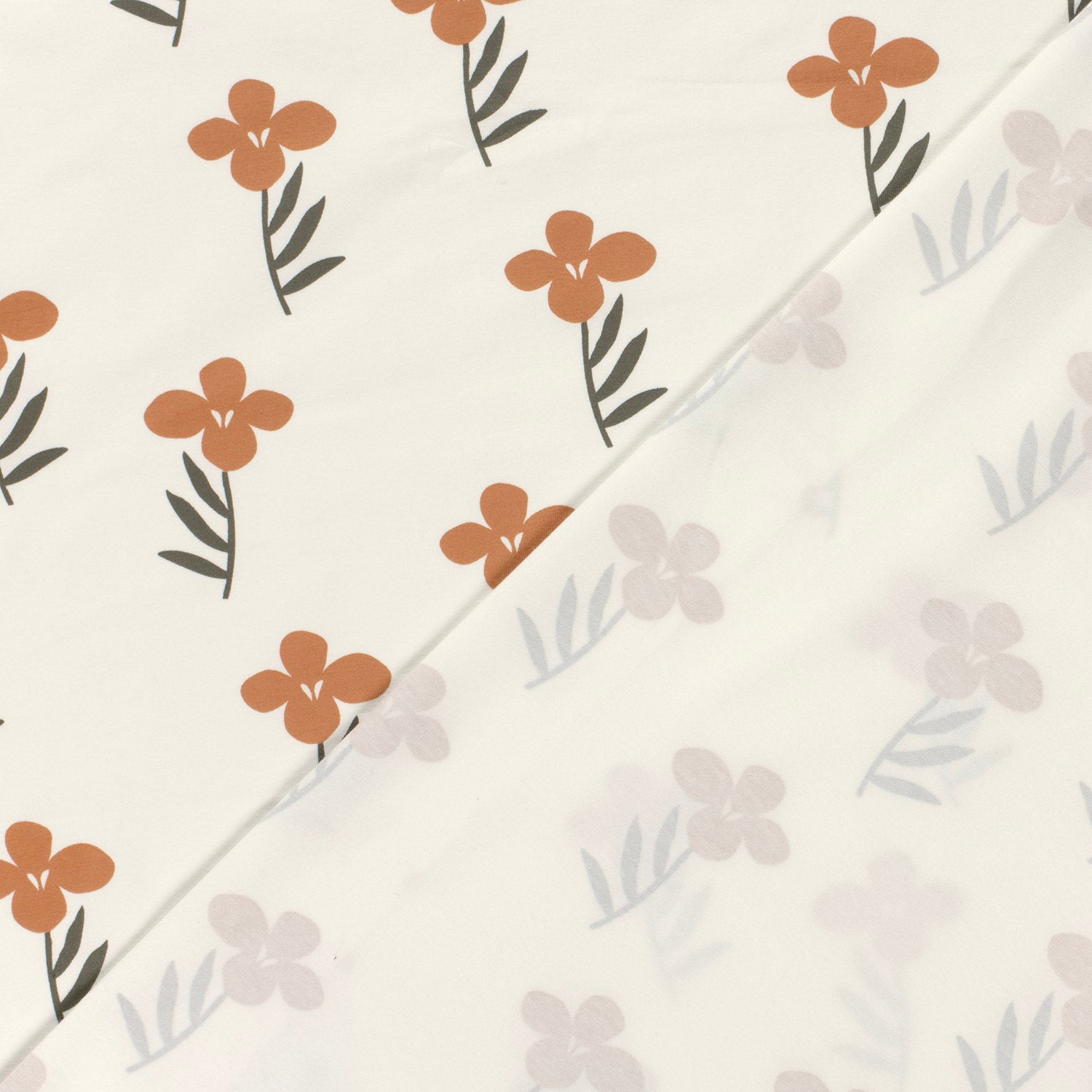 Cotton Jersey Printed Big Flowers Off White