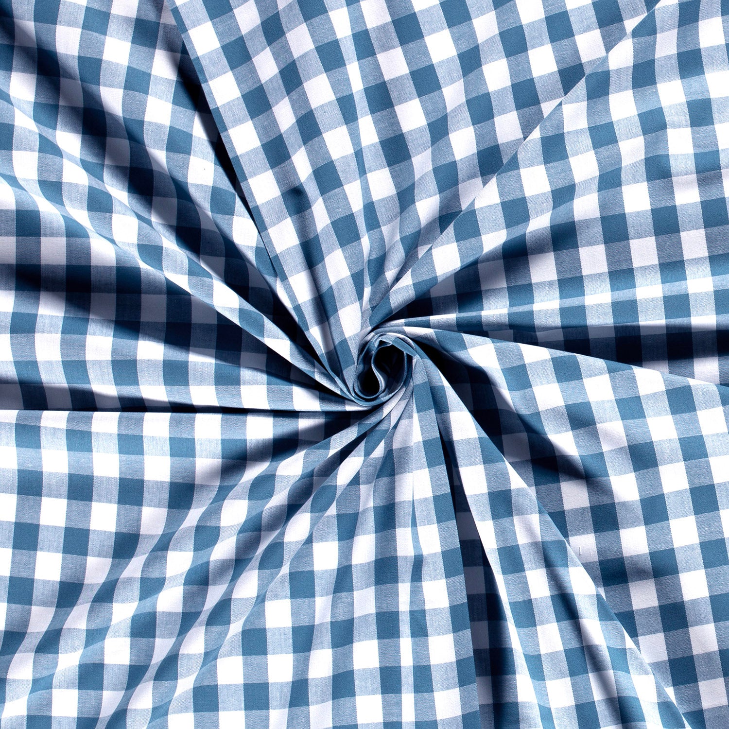A lightweight, smooth cotton poplin with a classic gingham check pattern. Its crisp texture and breathable quality make it versatile and easy to work with. Commonly used for tablecloths, accessories, blouses, and various apparel or décor projects.