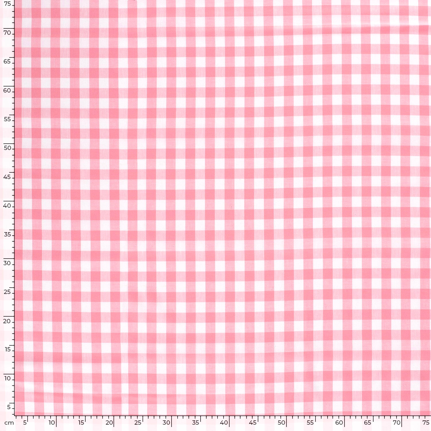 A lightweight, smooth cotton poplin with a classic gingham check pattern. Its crisp texture and breathable quality make it versatile and easy to work with. Commonly used for tablecloths, accessories, blouses, and various apparel or décor projects.