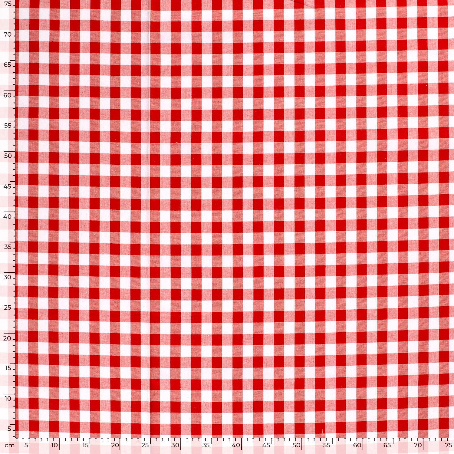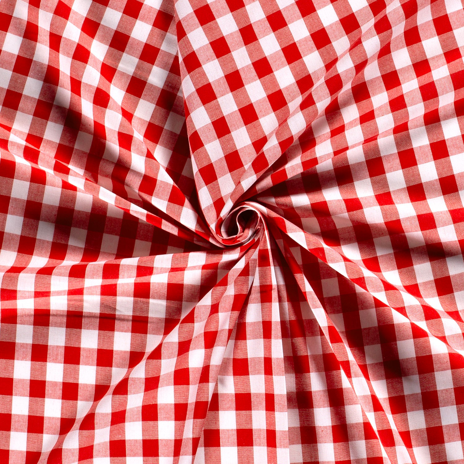 A lightweight, smooth cotton poplin with a classic gingham check pattern. Its crisp texture and breathable quality make it versatile and easy to work with. Commonly used for tablecloths, accessories, blouses, and various apparel or décor projects.