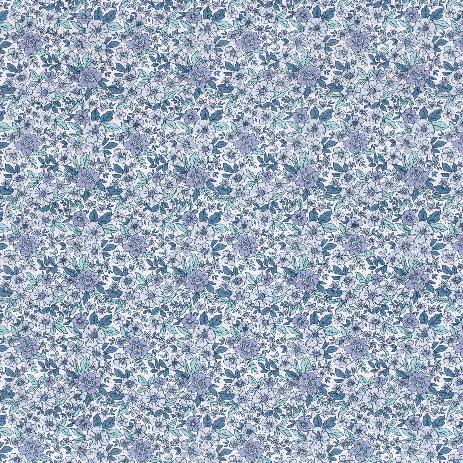 Cotton Poplin Printed Flowers Cobalt