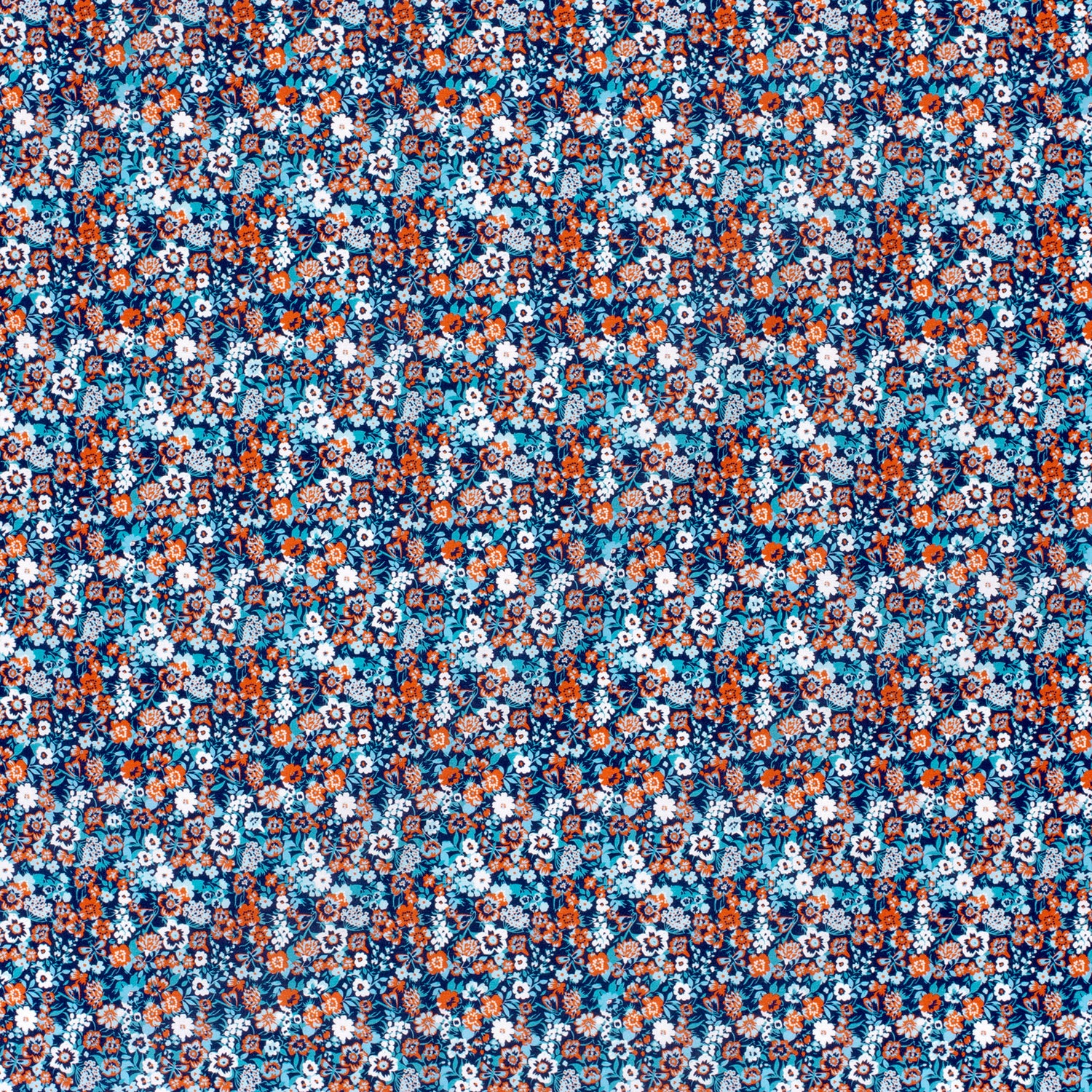 Cotton Poplin Printed Flowers Navy