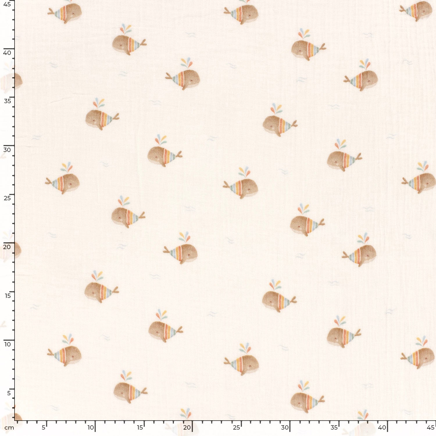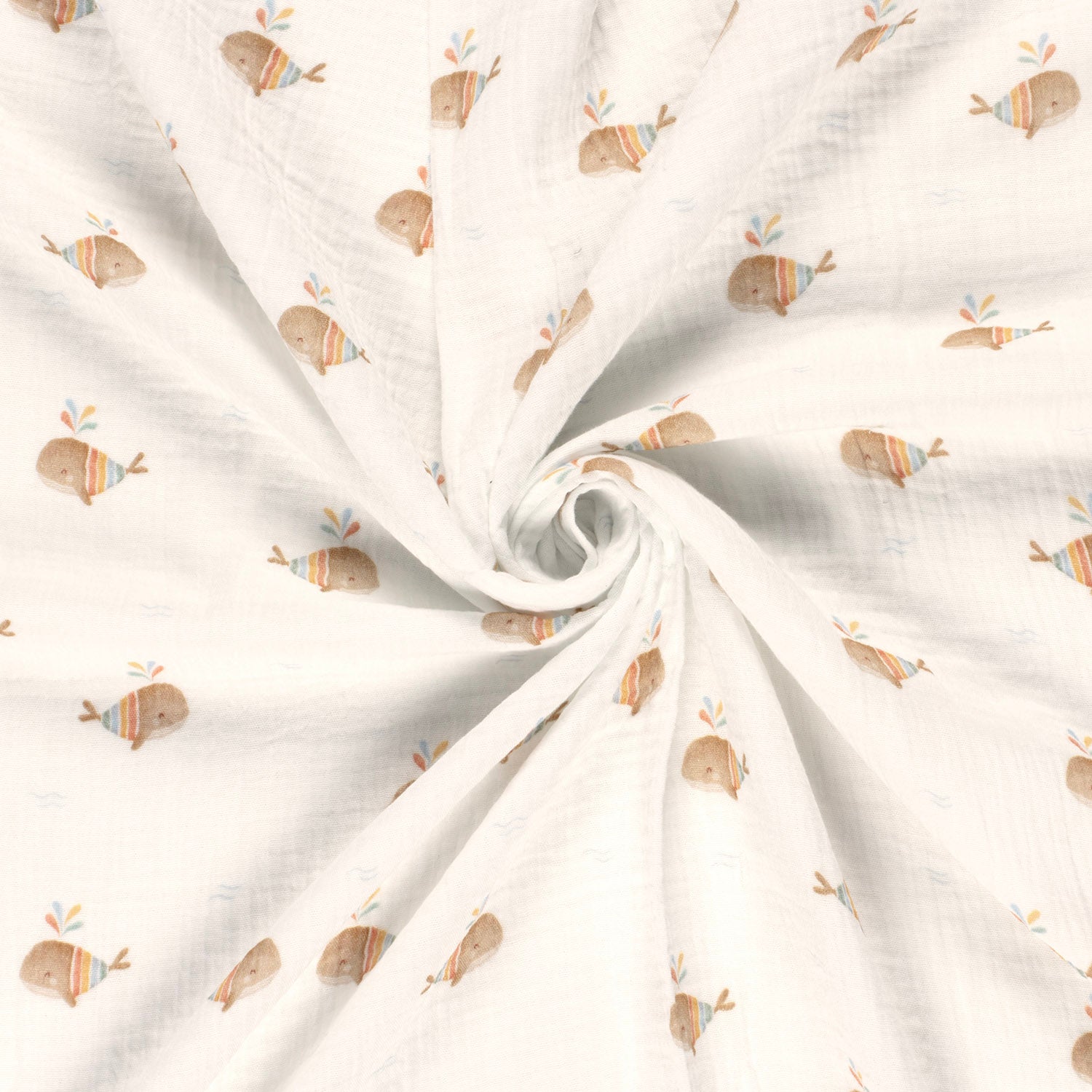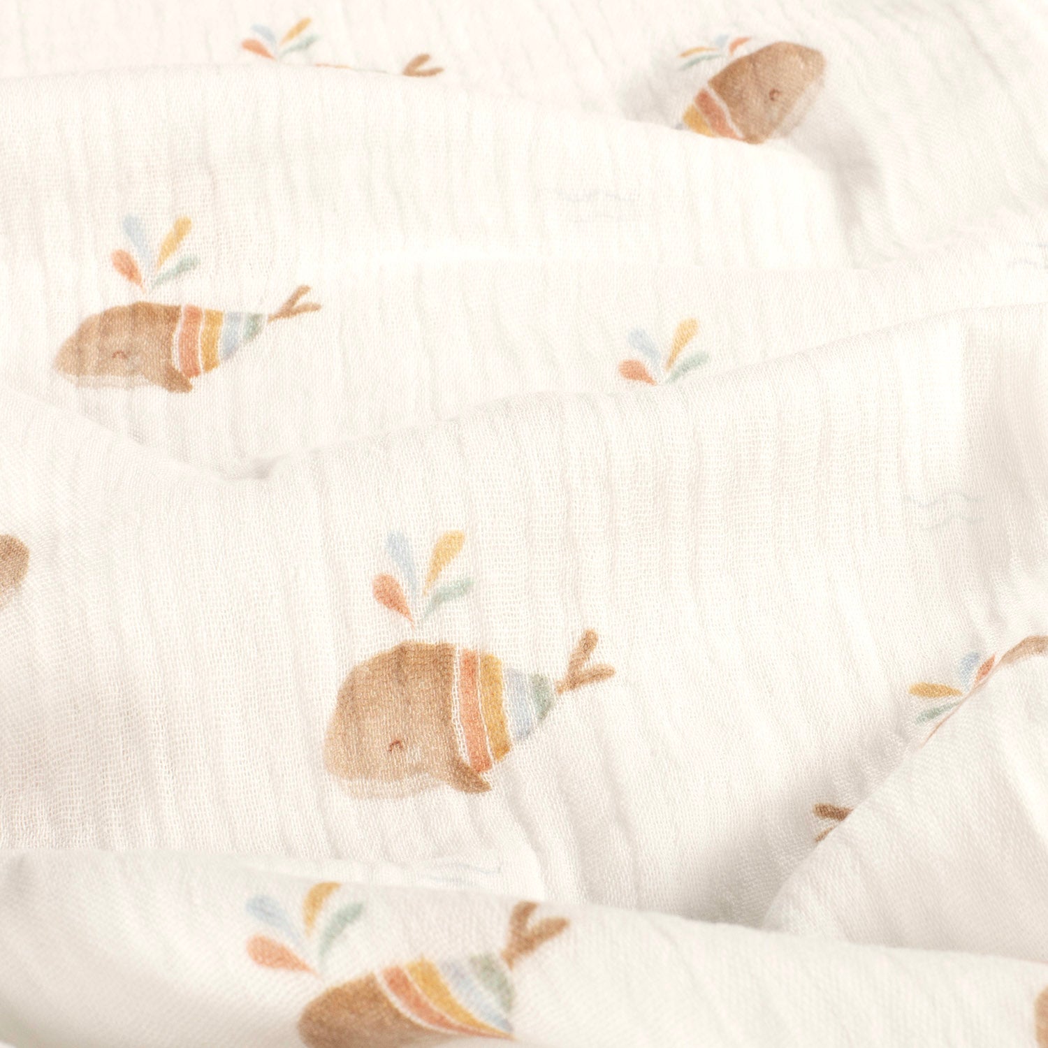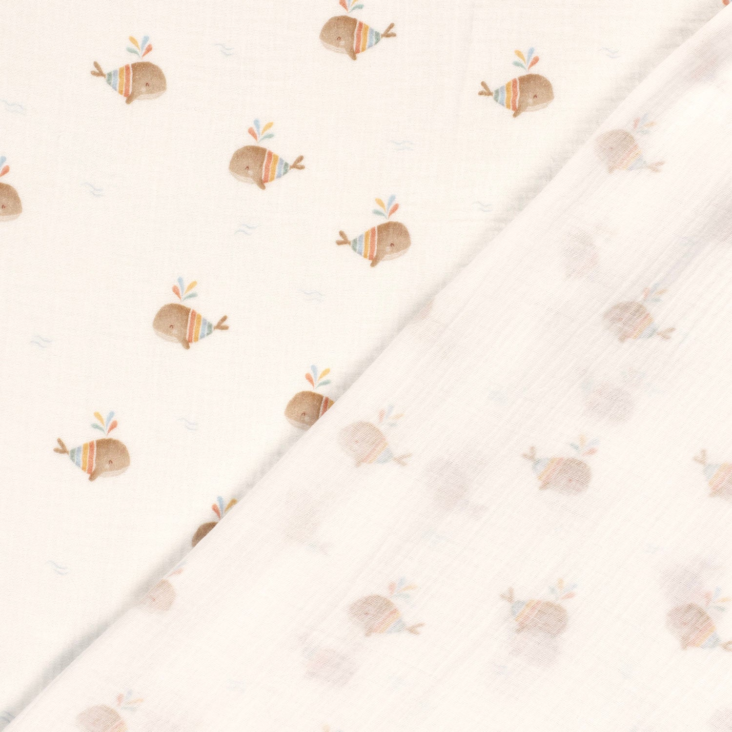 Double Gauze Printed Boho Whales Off White