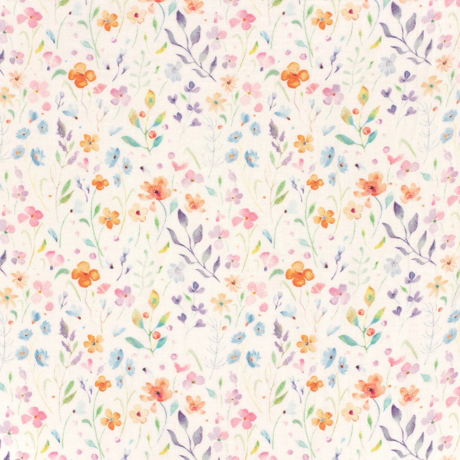 Double Gauze Printed Flowers Off White